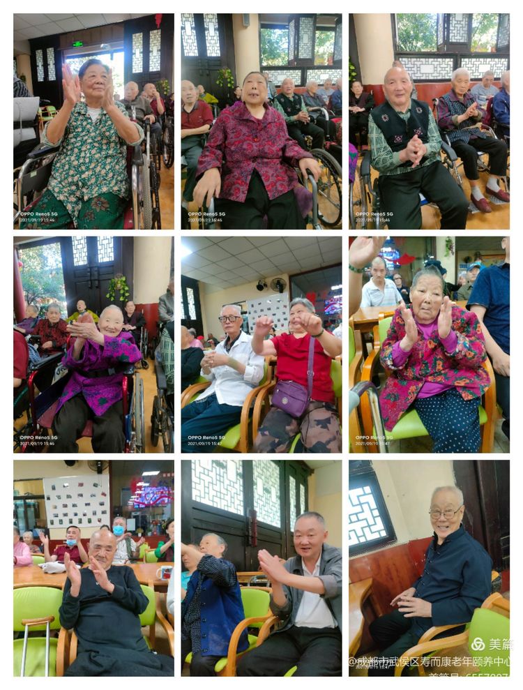 壽而康養老服務(wù)有限公司董事會(huì )董事長(cháng)特別安排下屬各機構為老人們熱烈慶?!皯c中秋、迎國慶”活動(dòng),壽而康武侯金花院于9月19日下午3點(diǎn)活動(dòng)正式開(kāi)始。老人、員工放聲歌唱,載歌載舞齊歡笑,歡聚一堂共同慶?!皯c中秋、迎國慶”。祝福祝祖國繁榮昌盛,祝國萬(wàn)歲!